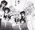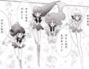 This gallery features black and white manga scans of Haruka and Michiru with other characters, from the third edition of the