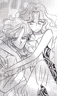 As Usagi is reunited with everyone, Michiru is seen hugging Haruka's arm.